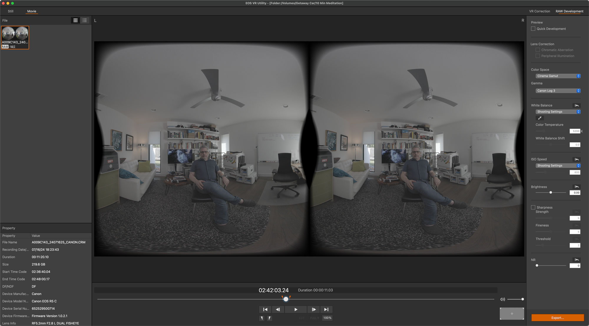 You can also skip the Canon VR Utility and do that part in Davinci Resolve using the Karta VR plugin. I've done that before and it works well but I'm unclear if I can export left and right views without first exporting a side-by-side video that then gets chopped into left and right. I guess that'll be another experiment.