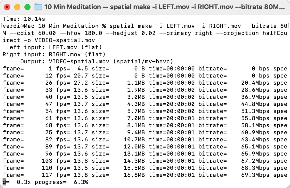 Then I exported left and right eye views and combined and compressed them with Mike Swanson's Spatial Video Tool.