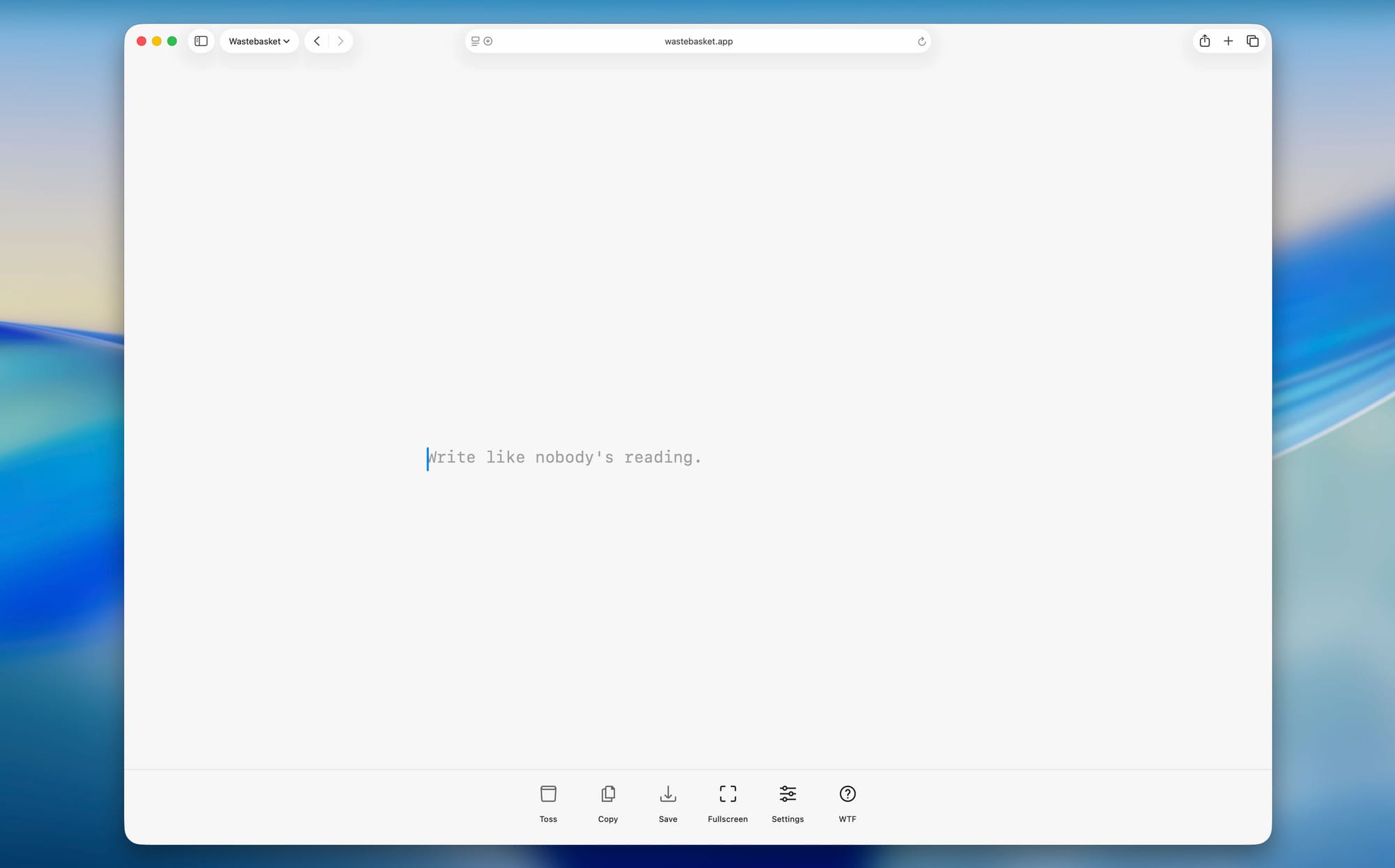 Wastebasket is free. There are no accounts, no tracking. Your writing never leaves your device and it works offline. You can use it by going to wastebasket.app and just starting to write.
