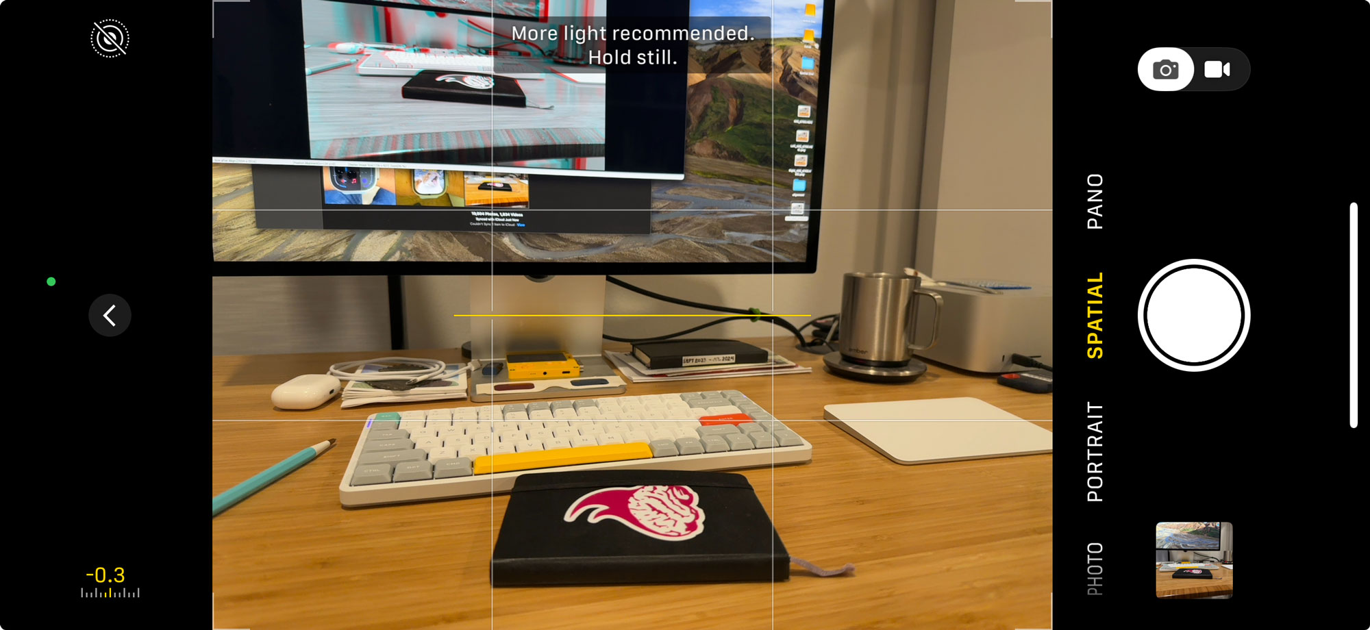 for f in *.HEIC; do spatial export -i "$f" -o Left_$f.png -o Right_$f.png;done- Use Stereo Photo Maker to open sets of left and right images, and then use option+a to auto align the images.